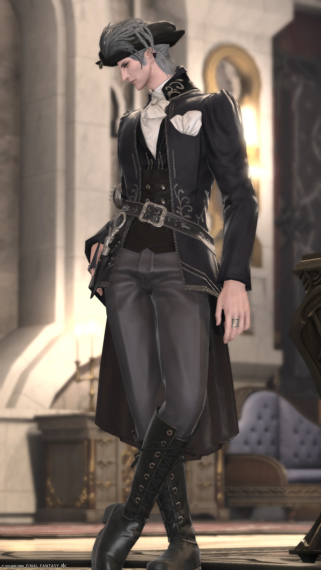 イシュガルドの上層にいそうな雰囲気のコーデです。