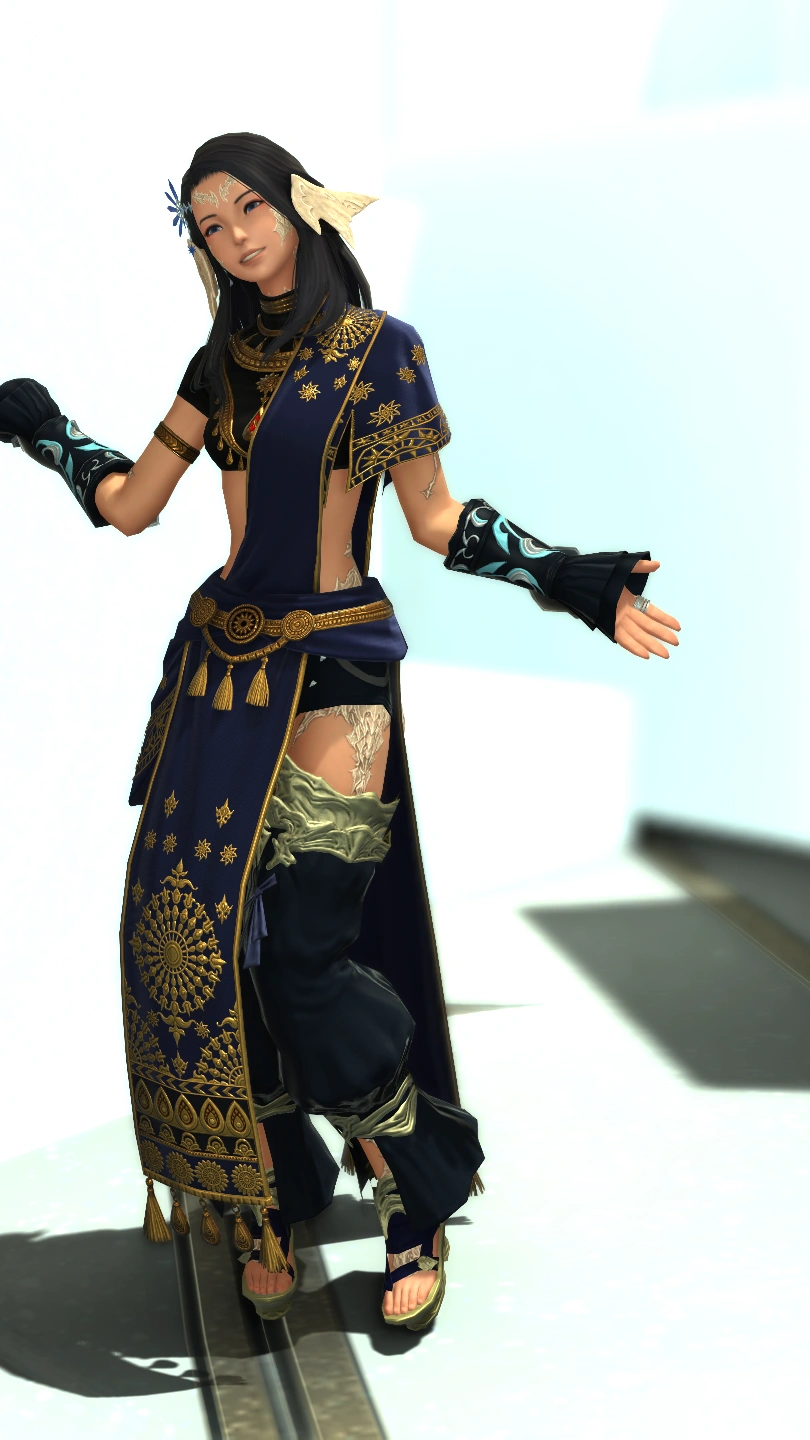 民族衣装とか好きなので、アラビアンな感じのこの胴装備に合わせてみました。