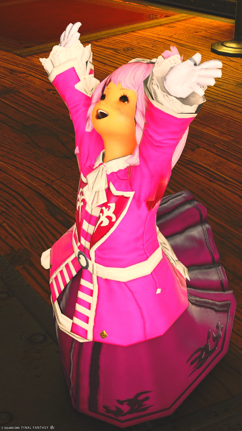 白リボンで髪の毛まとめてる風。