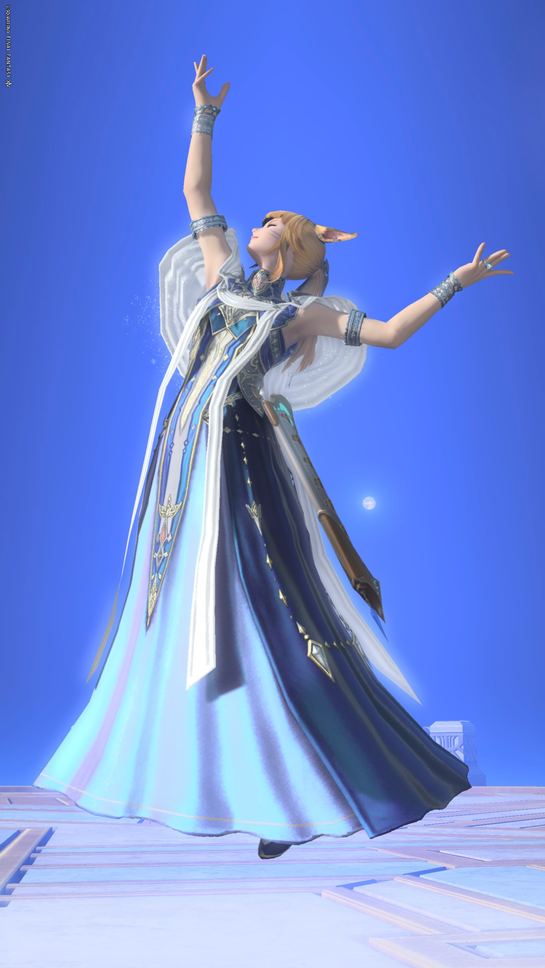 青と白のグラデーションドレスが夜空に輝く一番星のような存在感があります。 ヒーラーローブについてはメタリックダークブルーの染色も良いです。